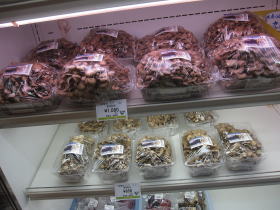 道の駅九頭竜では、和泉地区の特産物(九頭竜まいたけ、穴馬スイートコーン、穴馬かぶら、地元の山菜など)の販売を行っています。地区に古くより守り伝えられてきた保存食の数々、冠婚葬祭時に準備された家庭の味などが並べられており、特に「まいたけ弁当」は一番人気です。